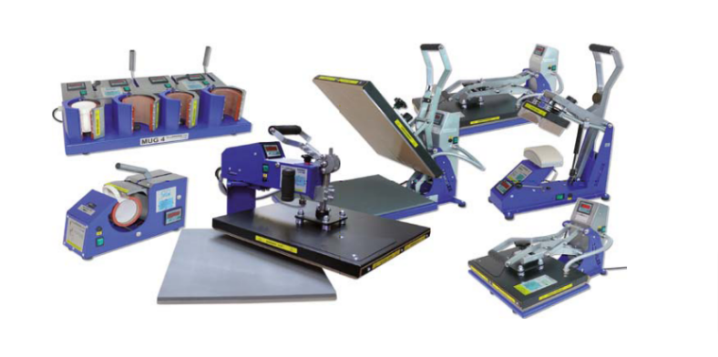 As prensas térmicas mais comuns são as unidades articuladas. Uma concha (Clamshell) abre pela parte traseira e a placa abre em um ângulo para permitir acesso à área da imagem. Isso é bom para pequenos itens e roupas imprimíveis. O estilo oscilante levanta e baixa a placa verticalmente e gira para um lado (Rotativa Lateral) geralmente é usado para superfícies rígidas. Algumas dessas prensas são automáticas, pois fecham e abrem com um cronómetro, para que tenha controle preciso de suas transferências. Muitas unidades são totalmente manuais. Estas são muito mais populares porque requerem um investimento inicial menor. Finalmente, existem unidades projetadas para serem transferidas para t-shirts. Elas têm um sistema tipo shuttle (Dupla Gaveta) para que possa preparar uma t-shirt em um gabarito enquanto ela está sendo transferida. Se estiver produzindo t-shirts de curta tiragem, esse é um bom método. Em escala maior, também existem prensas térmicas planas de grande formato que funcionam de maneira muito semelhante, em princípio, aos sistemas clamshell menores, mas são projetadas para produzir gráficos sublimados de até 1m x 2m (e ainda maiores em algumas unidades personalizadas).