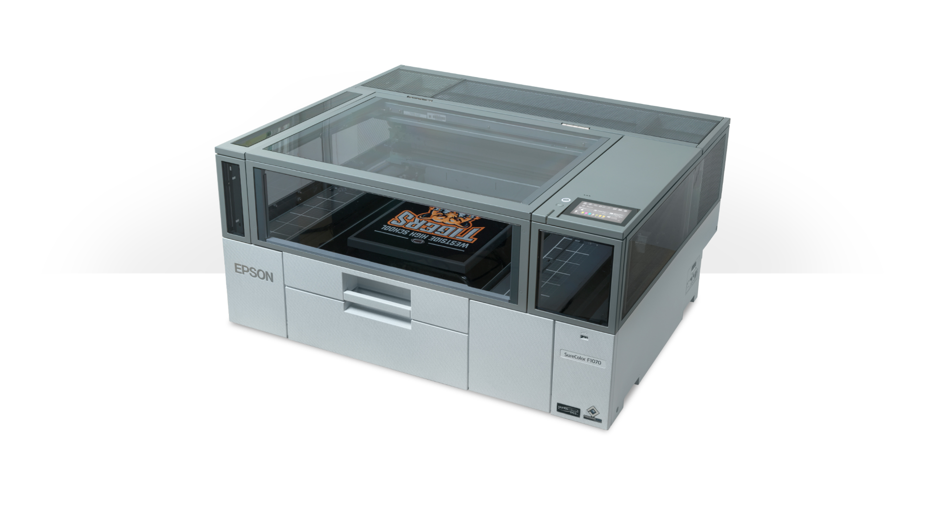Apresentando a EPSON® SureColor F1000, a melhor impressora combinada DTG e DTF compacta e versátil do mercado.