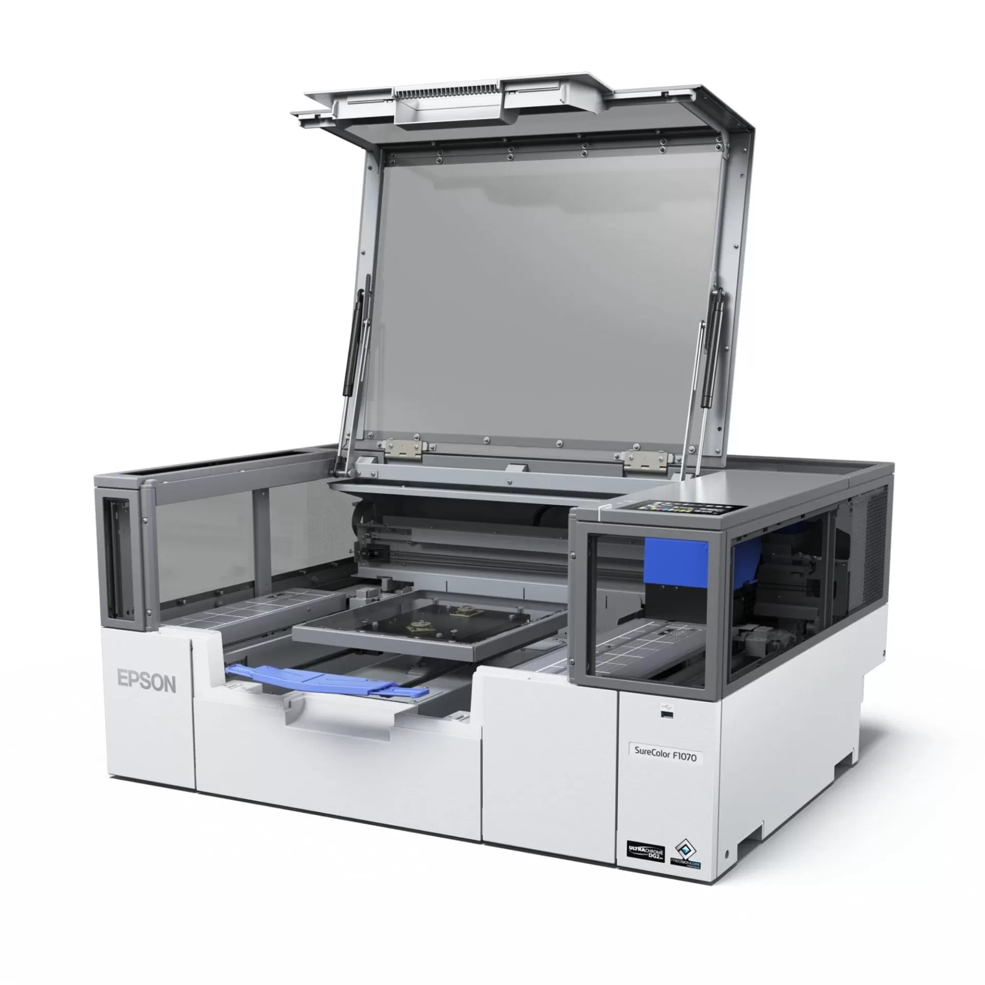 Com ajuste automático da altura da roupa, software Epson Garment Creator 2 robusto, funcionalidades de fácil manutenção pelo utilizador para ajudar a reduzir o tempo de inatividade e um design intuitivo com uma grande interface tátil de 4,3", a inovadora SureColor F1000 dá vida à sua criatividade e deixará uma impressão duradoura.