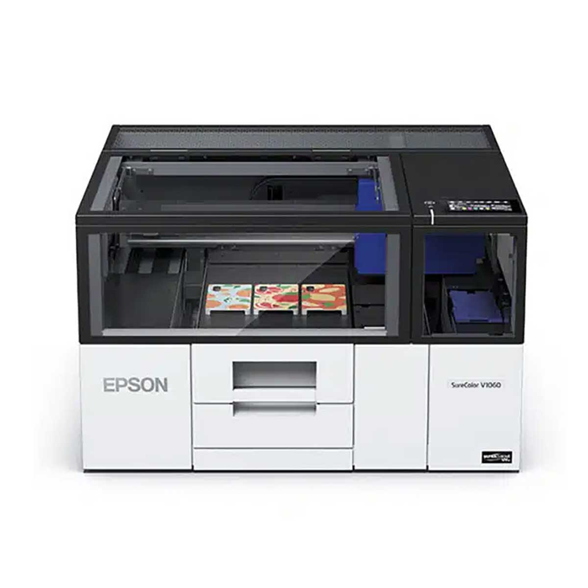 Construída com base na premiada tecnologia SureColor da Epson, a SC-V1000 pode imprimir diretamente numa vasta gama de substratos com uma espessura até 70 mm, incluindo acrílicos, policarbonatos, PVC, alumínio, metal, poliéster, espuma, estireno, madeira e pedra. Apresentando um sistema de pacote de tinta integrado com 6 cores (CMYK mais branco e verniz), a SC-V1000 produz imagens extremamente precisas e detalhadas, que podem ser facilmente personalizadas. Com um tamanho altamente compacto (699 mm x 699 mm), a impressora cabe facilmente na maioria das bancadas e mesas de trabalho padrão e, como não é necessário espaço atrás da unidade, pode ser colocada em cantos ou contra uma parede.