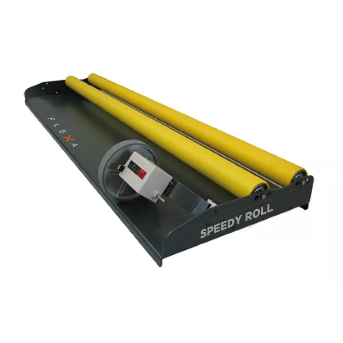 Desenrolador de bobinas com contador de metros. Equipamento essencial para todos os revendedores de materiais adesivos enrolados em bobinas, com um prático contador de metros para contabilizar os metros retirados.