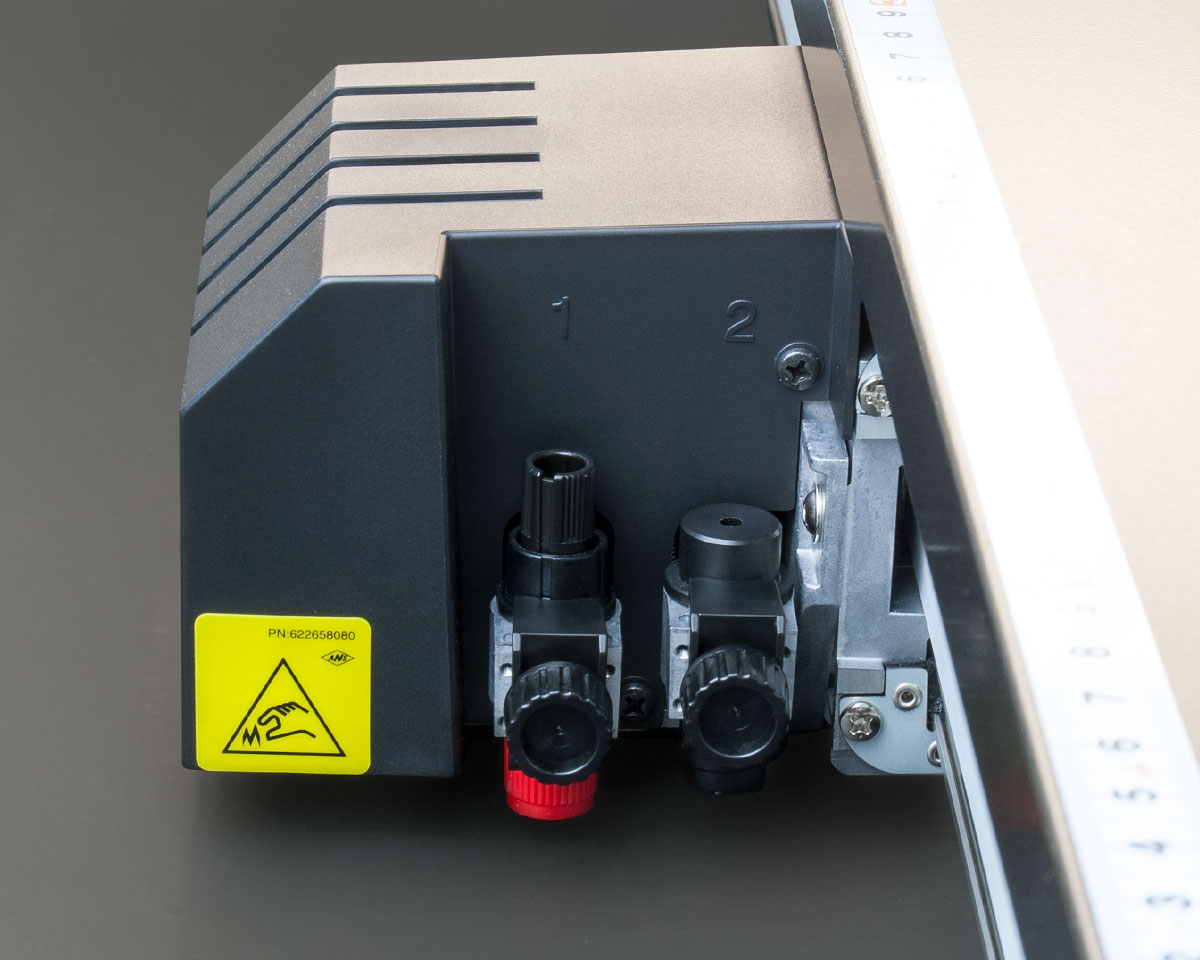 A série Graphtec FCX4000 vem de fábrica com uma configuração de cabeça dupla que permite o carregamento simultâneo de canetas, ferramentas de corte e ferramentas de vincagem. Um novo recurso de vinco reverso permite o alinhamento e o vinco no verso do cartão impresso, evitando o aparecimento de marcas de vinco na superfície impressa. Uma função simples foi habilitada para criar linhas de dobra para uma dobra limpa em microcaneluras e papelão. É possível selecionar até três linhas de dobra. Se duas ou três linhas de dobra forem selecionadas, o espaçamento entre elas também pode ser especificado. Operações de vincagem repetidas também podem ser especificadas para cada linha.