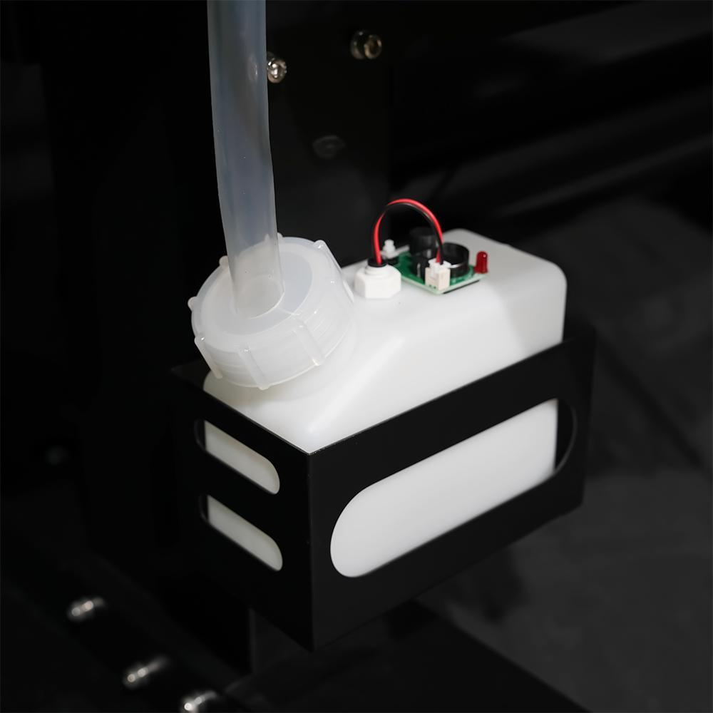 Sistema de recirculação de tinta, agitador de tinta branca e filtragem adicional nos amortecedores.