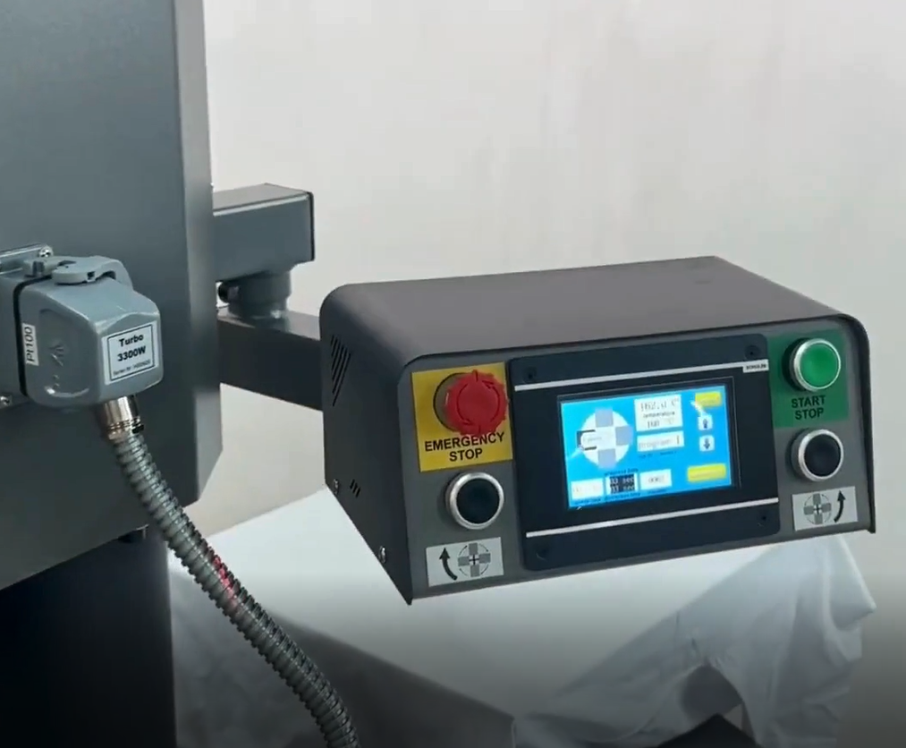 A AIR2PRESS 70x100 é uma moderna prensa de transferência em carrossel automática. Operar a AIR2PRESS 70x100 é extremamente simples: coloque a peça têxtil sobre uma das duas placas de base e inicie a prensa pressionando um botão ou mostrando a mão (gesto).
