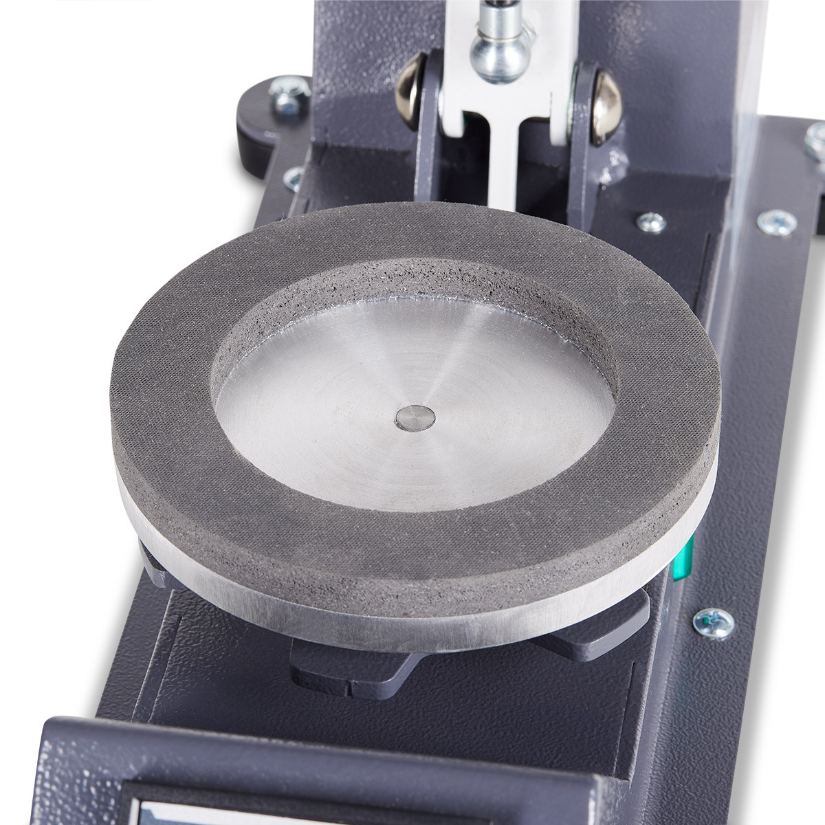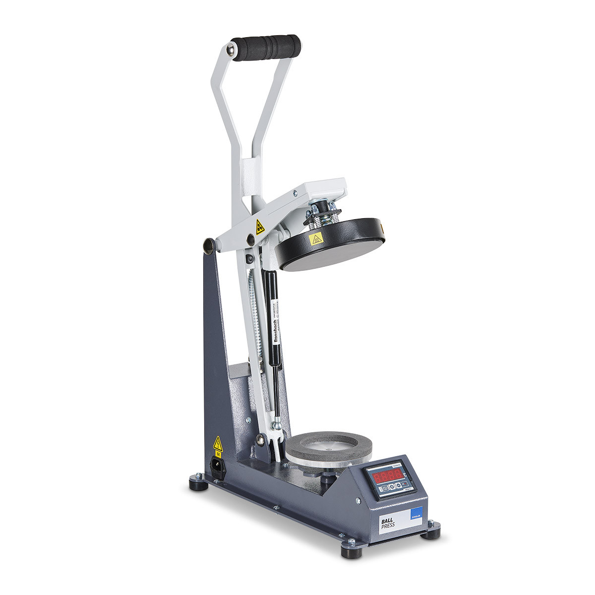A SCHULZE BALL PRESS possui um suporte redondo para bolas de diversos tamanhos e uma superfície de aquecimento e prensagem com diâmetro de 15 cm. Como de costume nas prensas de transferência SCHULZE, possui controle digital de temperatura e tempo, bem como modo de economia de energia.