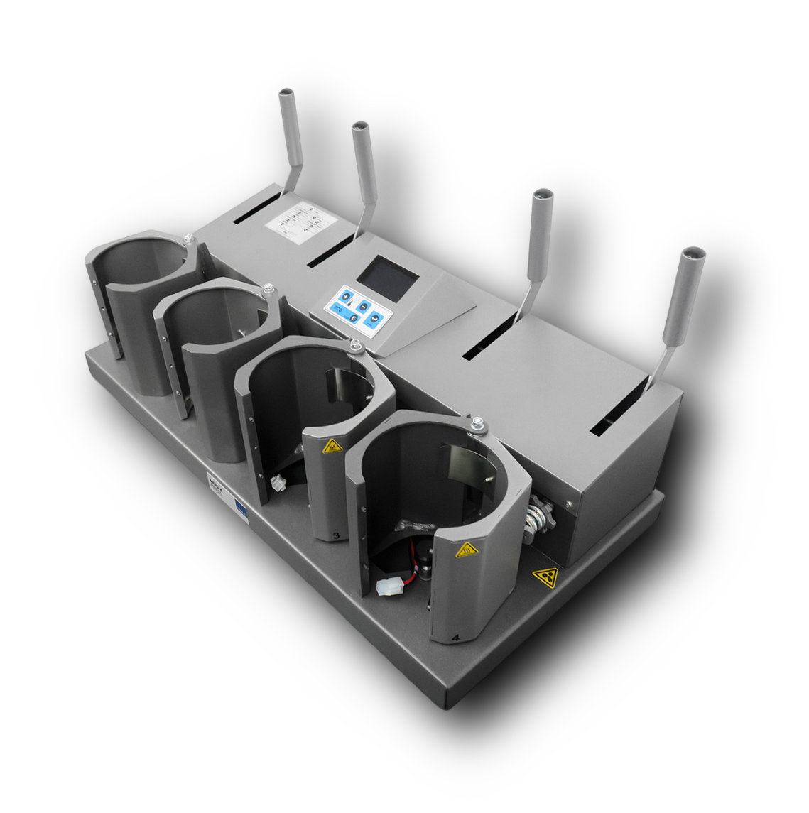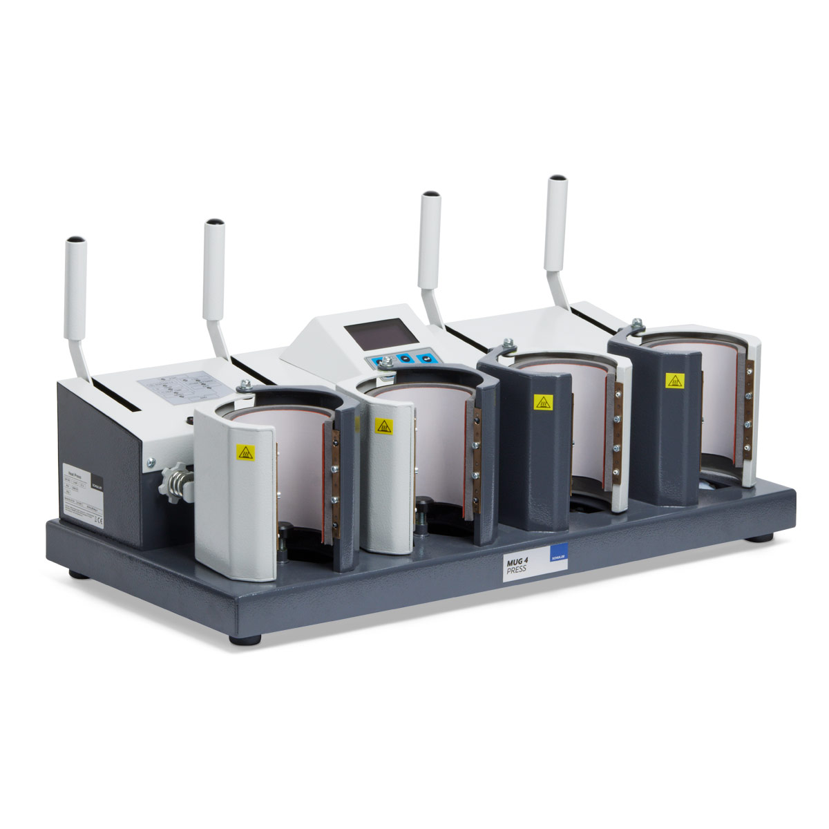 Oferecemos a MUG 4 PRESS em duas versões: como versão básica sem elementos de aquecimento e como versão totalmente equipada com resistências de aquecimento 4 x 80mm. Na versão básica mesmo, pode equipar a prensa com nossa grande seleção de resistências de aquecimento.