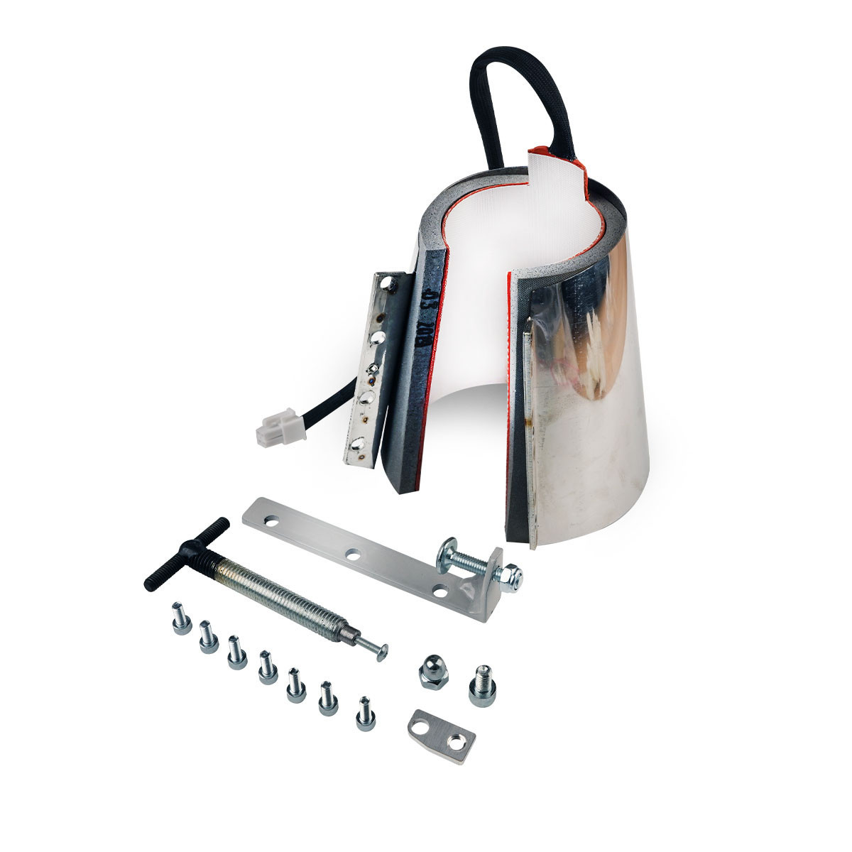 NOTA: Certifique-se de que a manga de aquecimento também esteja ajustada à sua prensa de canecas. Somente o 80 mm plus pode ser usado no MUG 15.