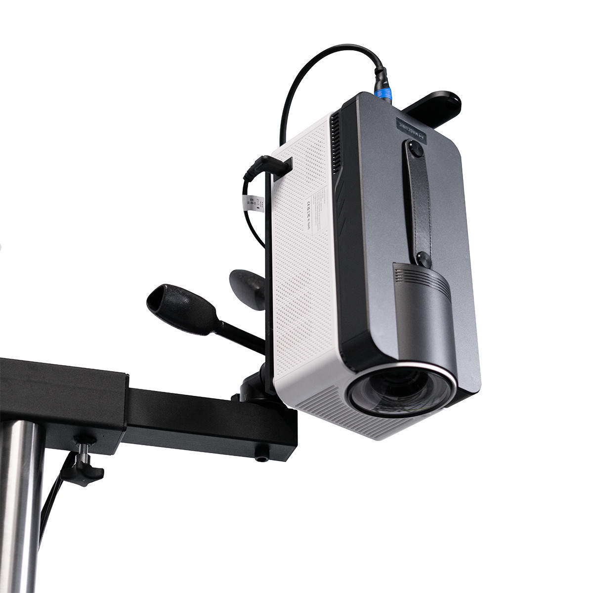 A distância mínima entre o suporte e a parte superior do projetor é de 1,4 metros, e a máxima é de 2 metros.